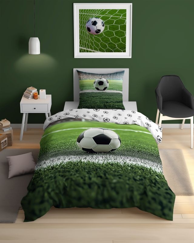 Obliečky Futbal sú perfektnou voľbou pre všetkých mladých futbalových nadšencov, ktorí chcú mať svoj šport aj v spálni – štýlové, pohodlné a praktické riešenie v jednom.
