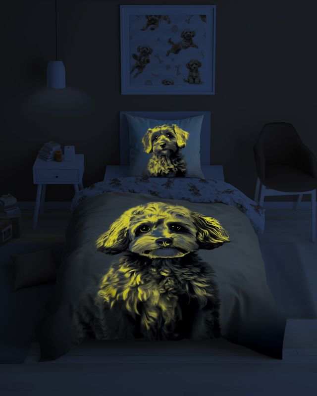 Obliečky majú zapínanie na zips. Odporúča sa pranie naruby pri 40°C so zatvoreným zipsom, sušenie pri nízkej teplote a žehlenie stredným stupňom – na zachovanie farieb aj svietiaceho efektu.