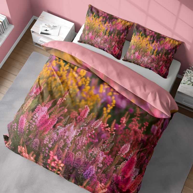 Rozmer 220x200 cm, 2x obliečka na vankúš 70x80 cm. Francúzske obliečky z mikrovlákna na manželskú posteľ s 3D motívom Vresová lúka