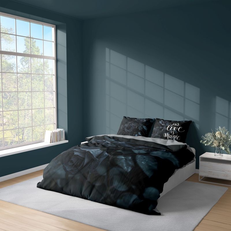 Rozmer 220x200 cm, 2x obliečka na vankúš 70x80 cm. Francúzske obliečky z mikrovlákna na manželskú posteľ s 3D motívom Ruže čierne