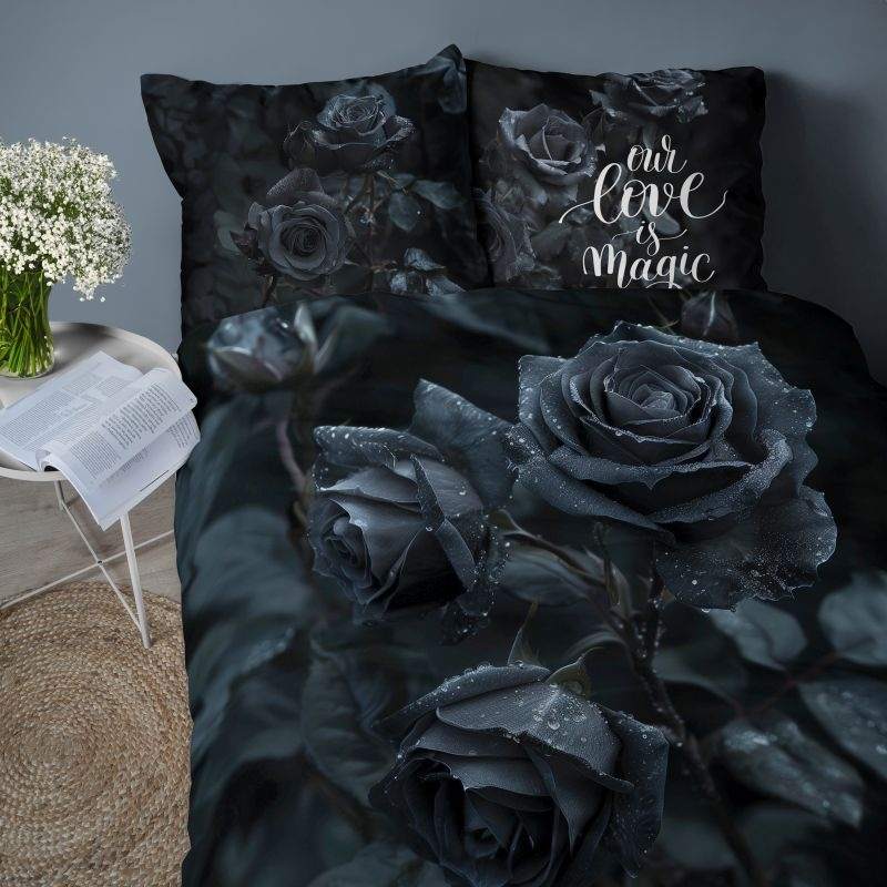 Tieto obliečky vynikajú svojím atraktívnym 3D motívom ruží na čiernom pozadí, čo dodáva spálni sofistikovaný vzhľad. Vyrobené sú z jemného mikrovlákna (100% polyester), ktoré je príjemné na dotyk a nenáročné na údržbu. Rozmery sú 220 × 200 cm pre prikrývku a 2 × 70 × 80 cm pre vankúše. Zapínanie je na zips pre jednoduché prezliekanie