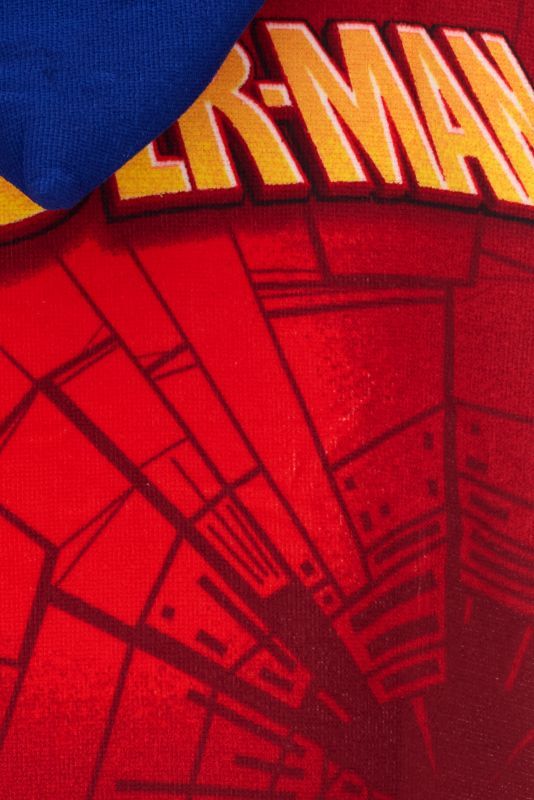 Vychutnaj si pohodlie a štýl pri vode aj doma — toto mäkučké pončo s motívom Spidermana s pavučinou je praktický doplnok po kúpaní alebo sprche.